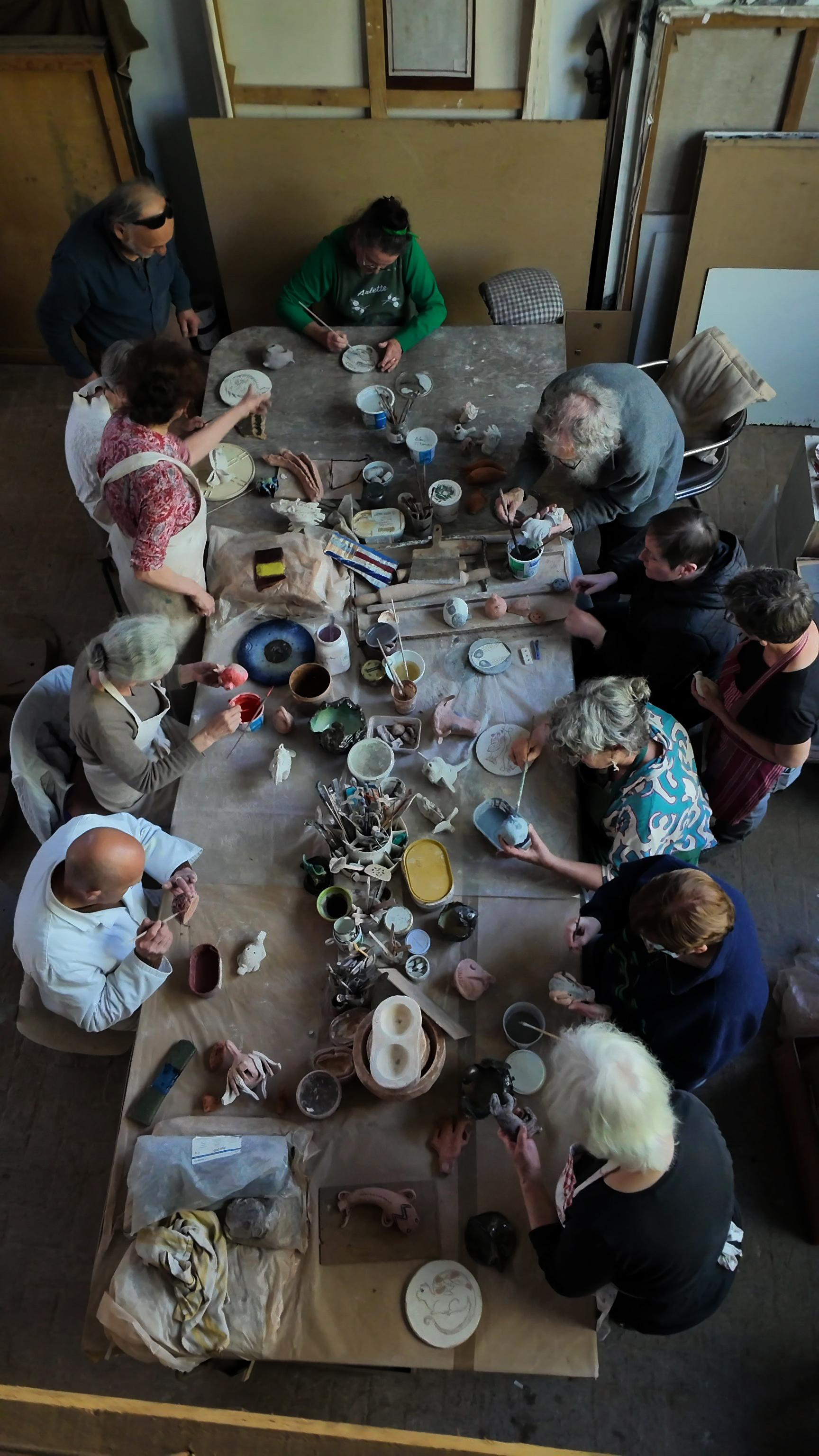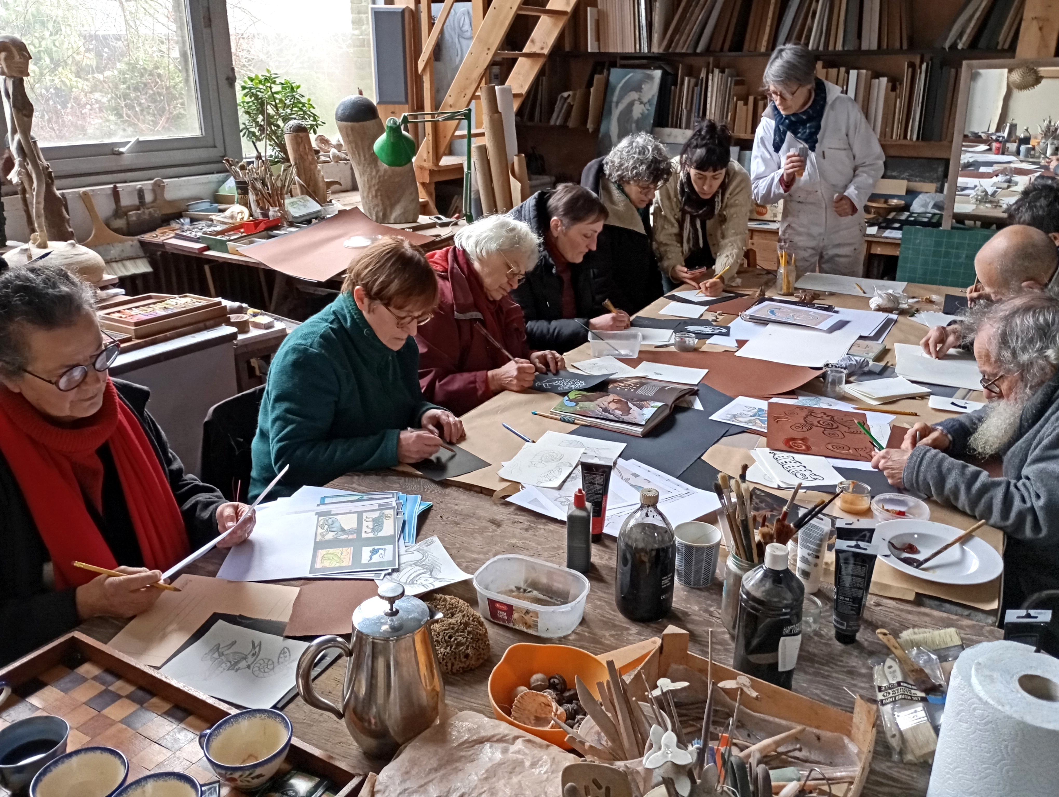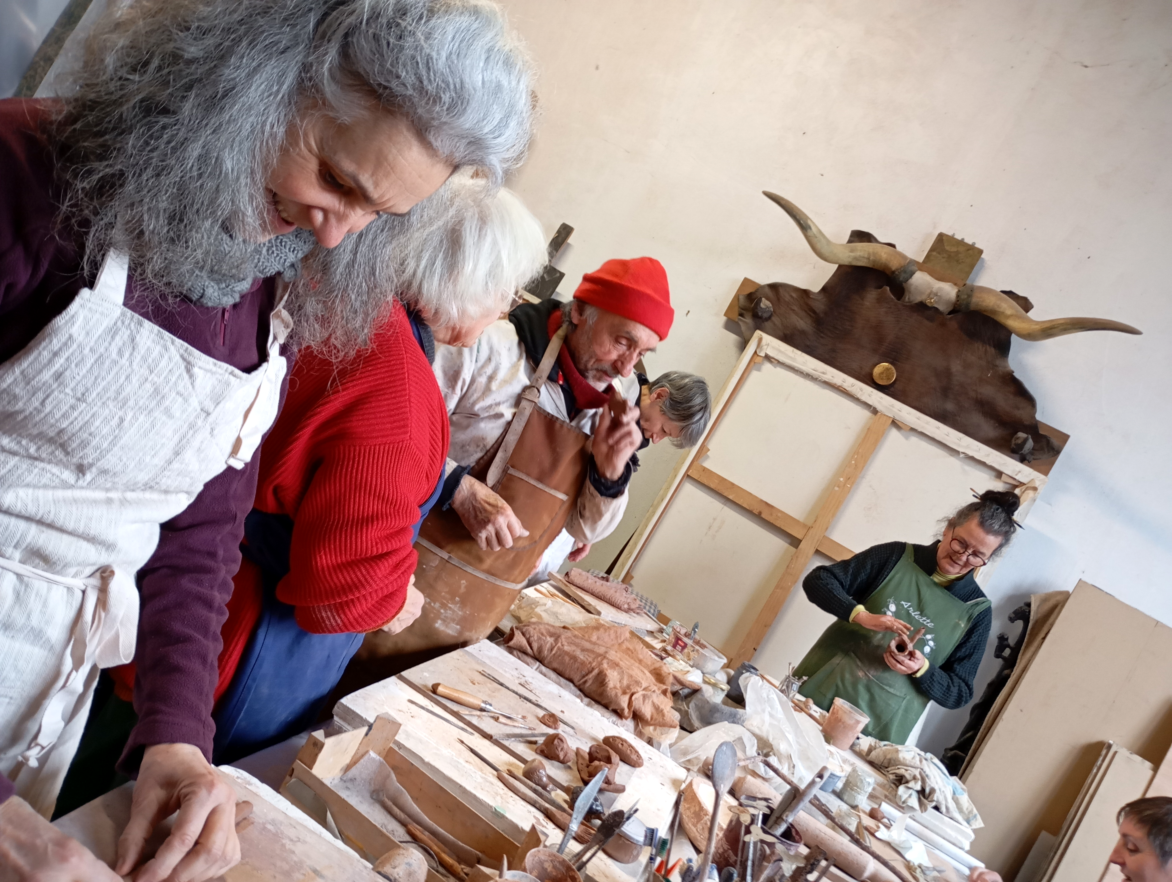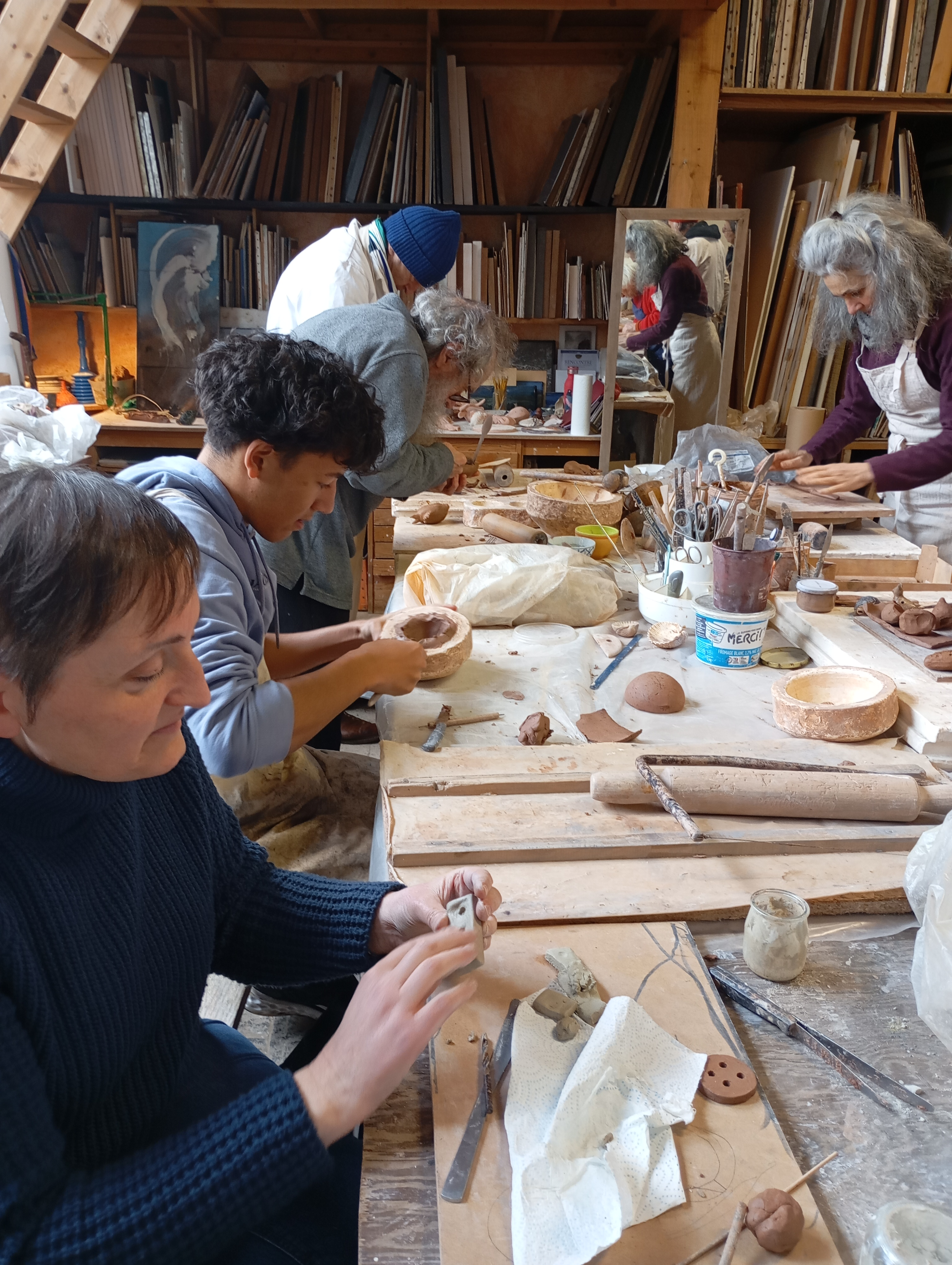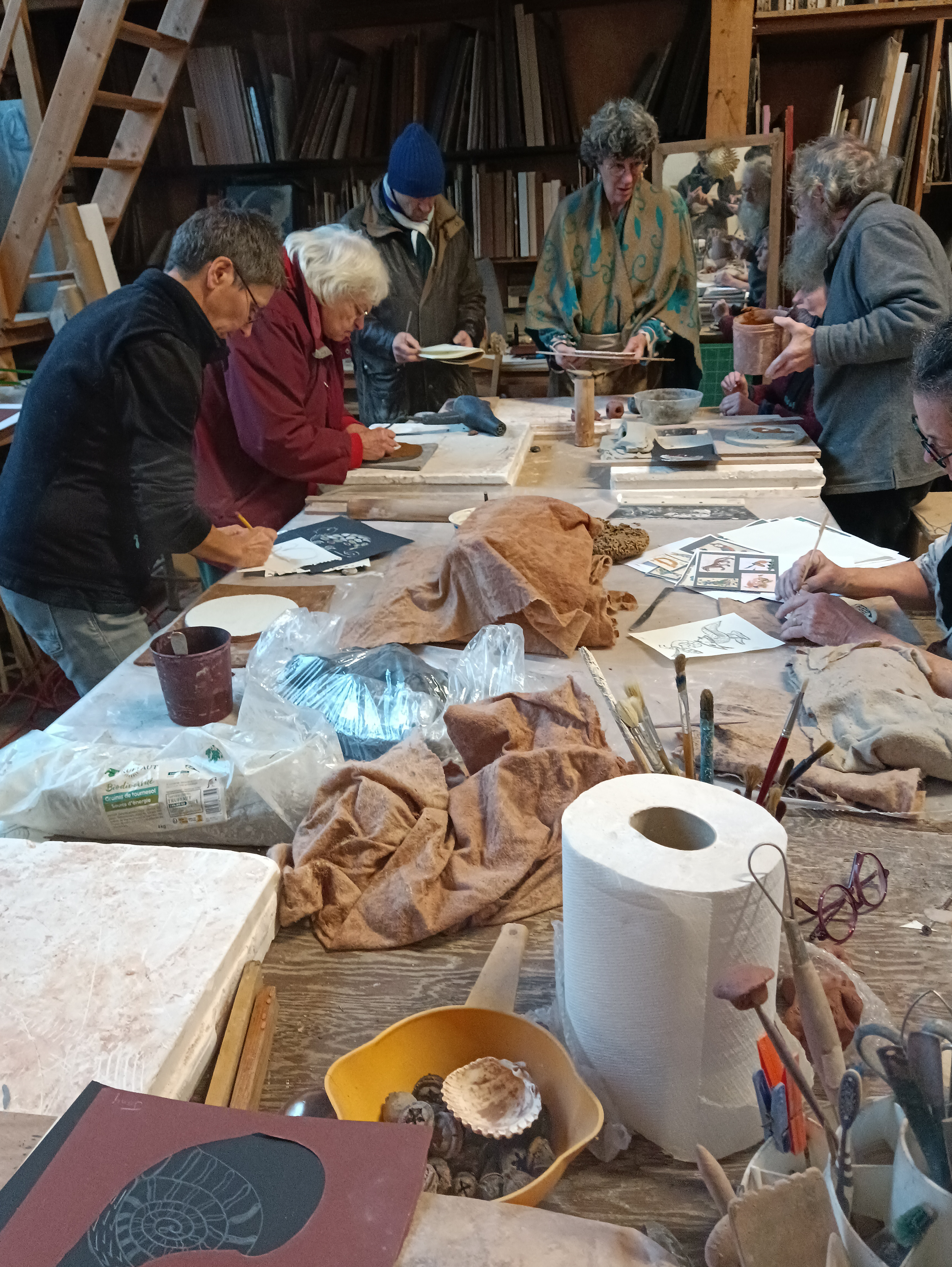 Les repas étaient pris en commun dans les ateliers de Jacques et Juliette Damville ou dans le jardin aux beaux jours ce qui a permis tout au long de l’année de former une véritable équipe. Il y aura d’autres temps de rencontres à la suite, les participants souhaitant faire perdurer la vie du groupe.
