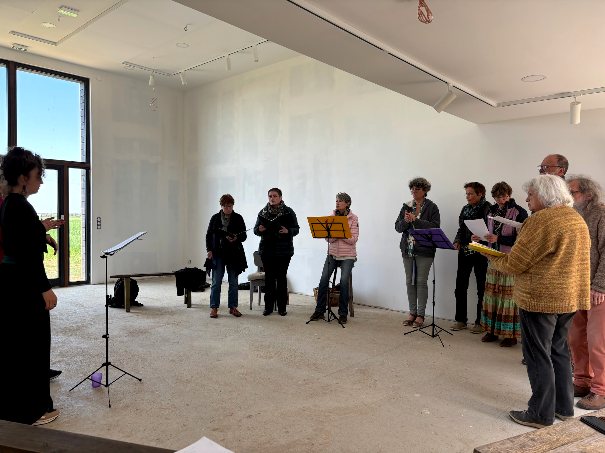 14 personnes ont suivi les ateliers terre et chant tout au long de l’année, issus de Bosc-Hyons et des alentours, ayant pour la plupart déjà une pratique vocale, mais pas forcément de grandes connaissances musicales (plusieurs ne savaient pas lire une partition) .