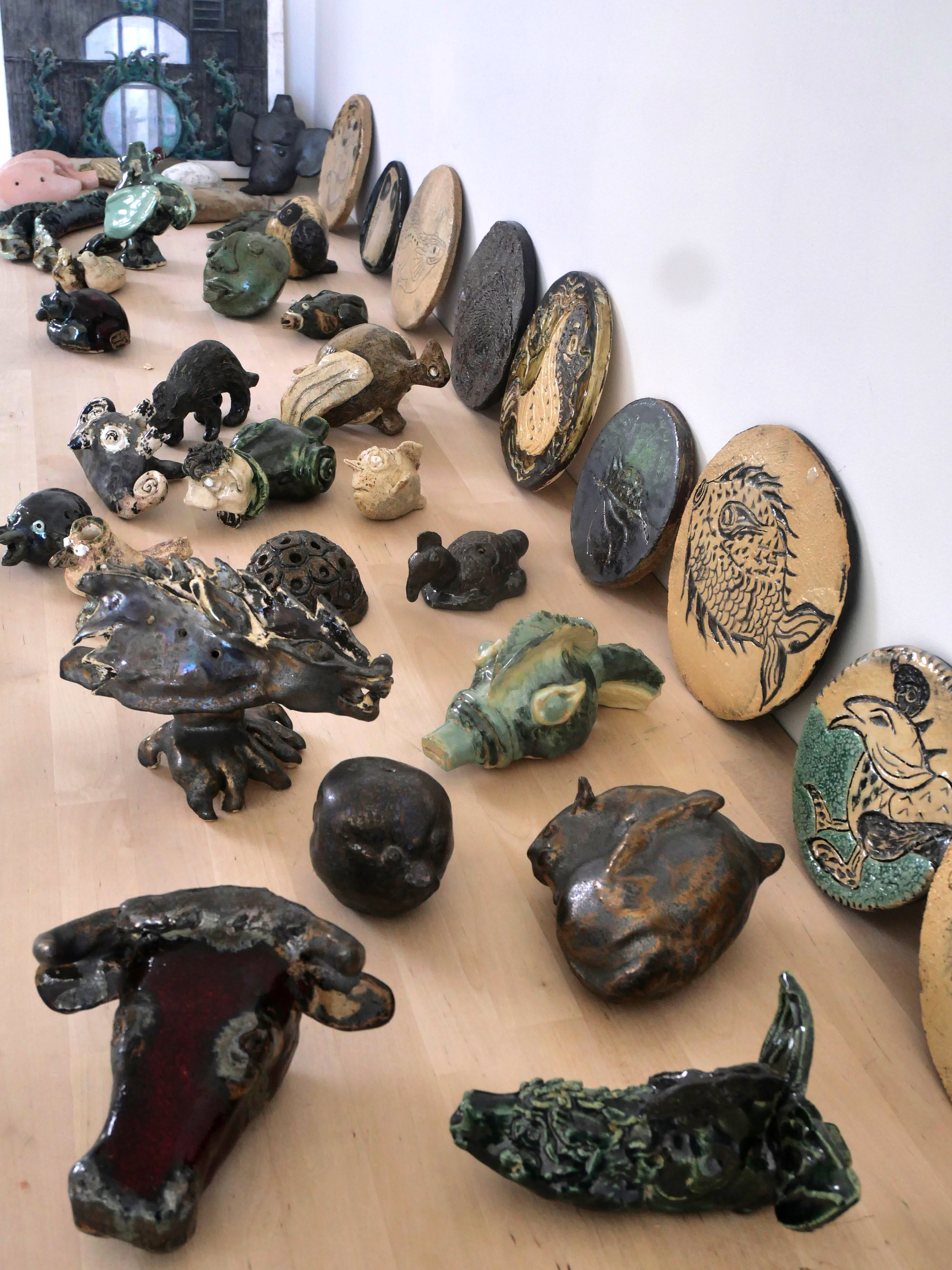 Des instruments en terre émaillée, zoomorphes, inspirés du bestiaire médiéval, réalisés par les participants sous l’égide de Jacques et Juliette Damville, se joignent au concert.