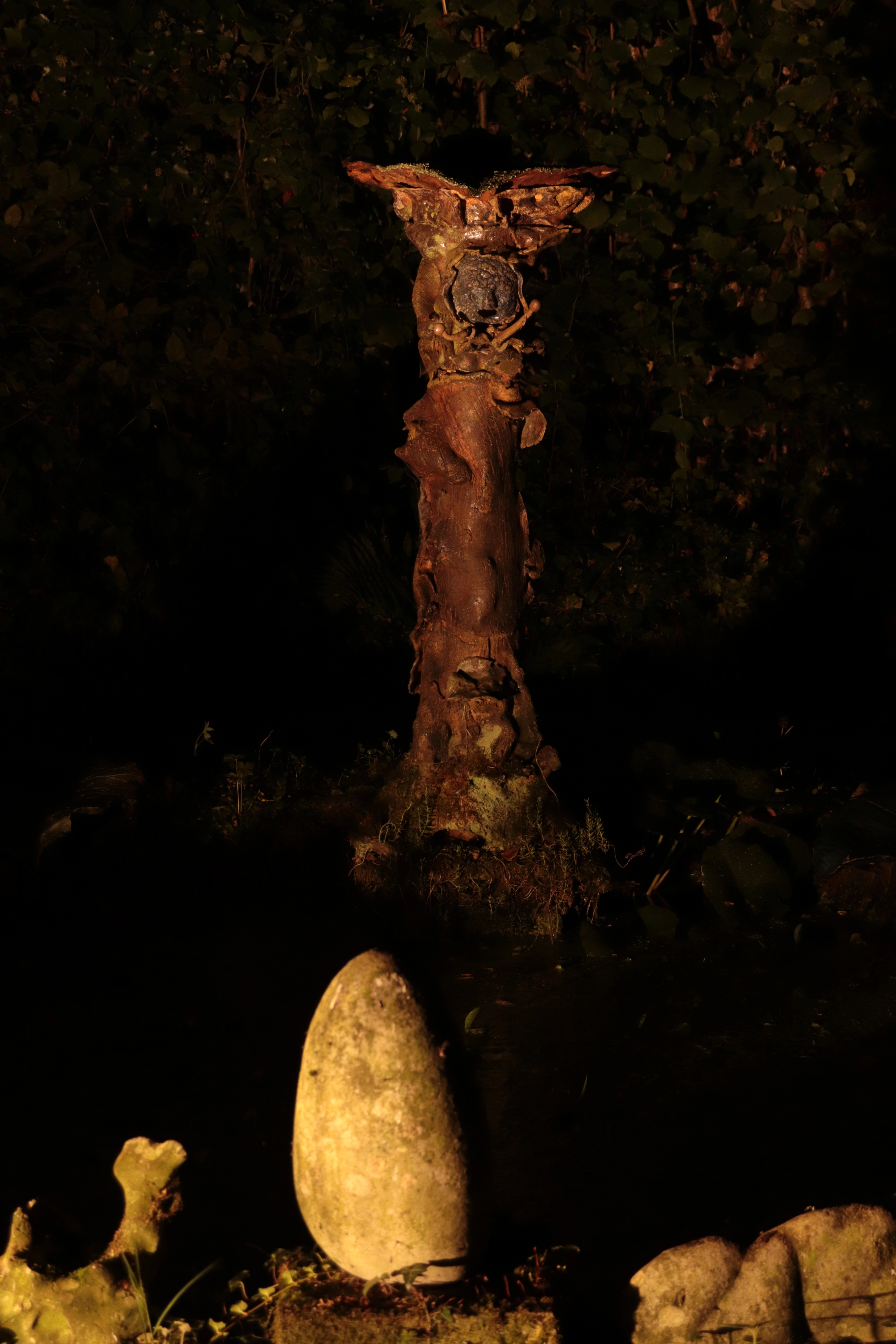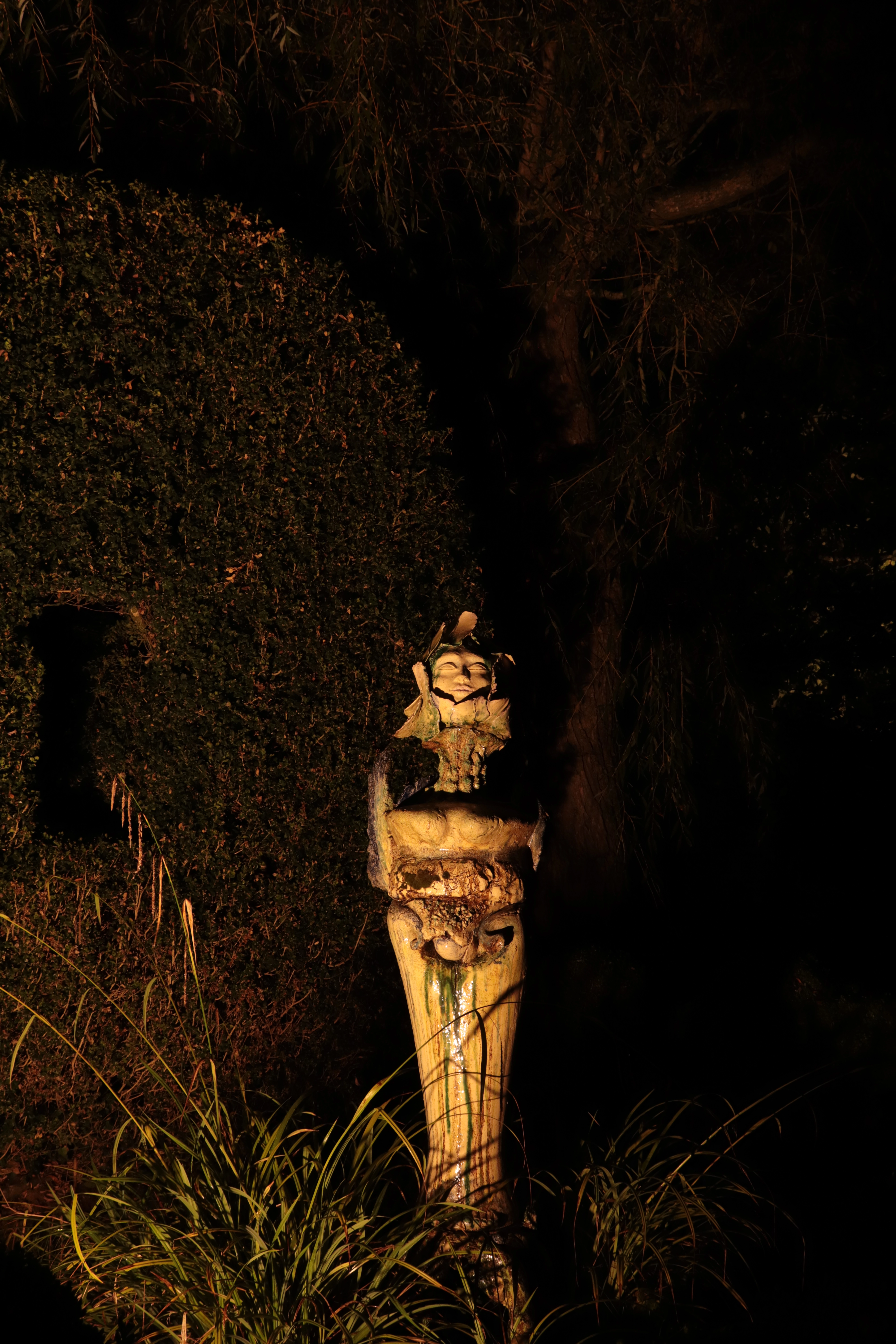 La visite nocturne révèle une atmosphère nouvelle : les mises en lumière soulignent certaines œuvres, tandis que d’autres demeurent dans l’ombre, préservant leur mystère.Certaines parties du jardin deviennent des tableaux lumineux, l’œil s’habitue à la pénombre, découvre les reflets de l’eau, les brillances de l’émail, dans le silence de la nuit.